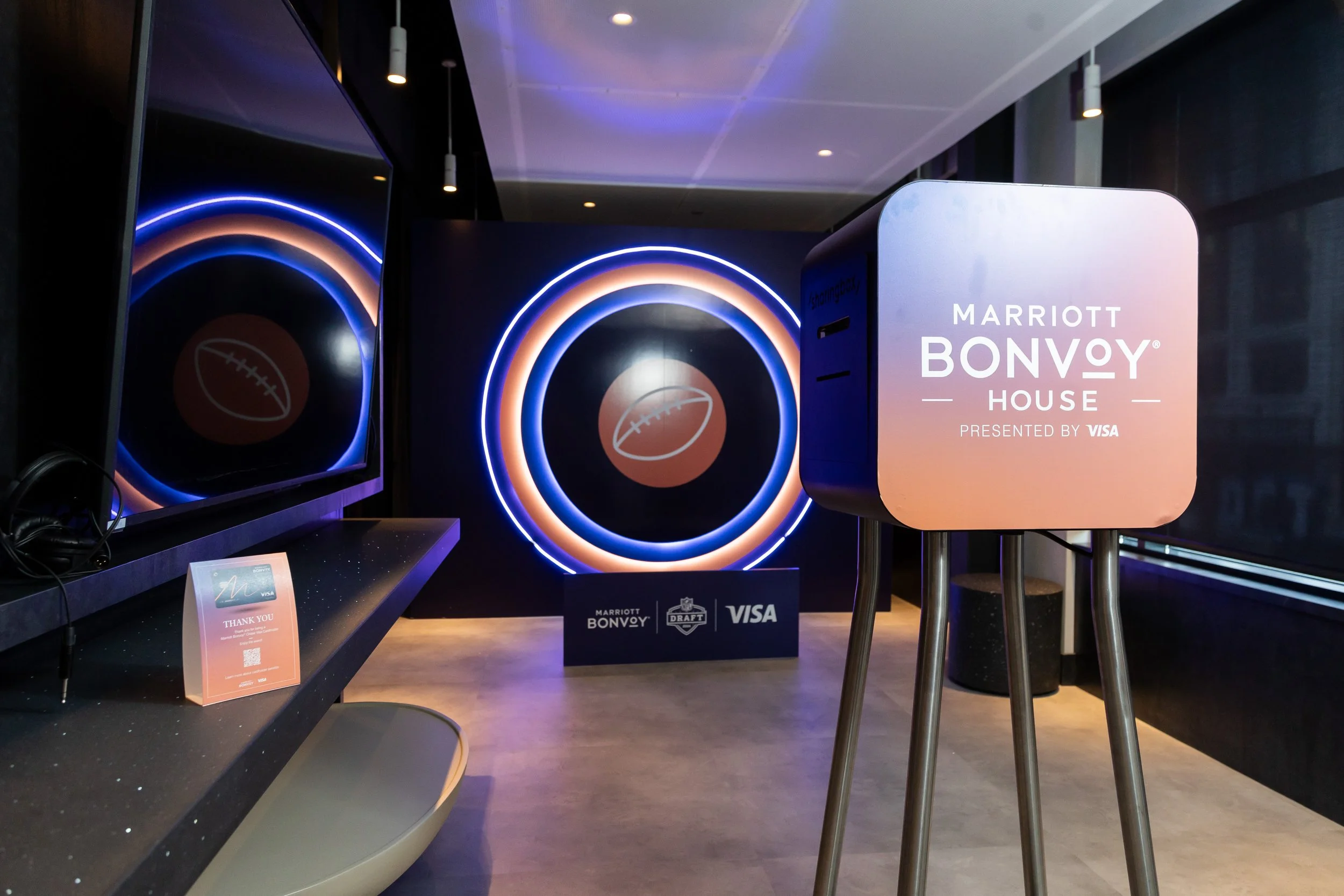 Guests snapped unforgettable pics at an immersive photo op, met NFL legends up close during exclusive meet & greets, and spun the custom Marriott Bonvoy prize wheel for a chance to score big. Fans also walked away with giveaways like collectible posters and earbuds, perfect reminders of a night where fandom took center stage.